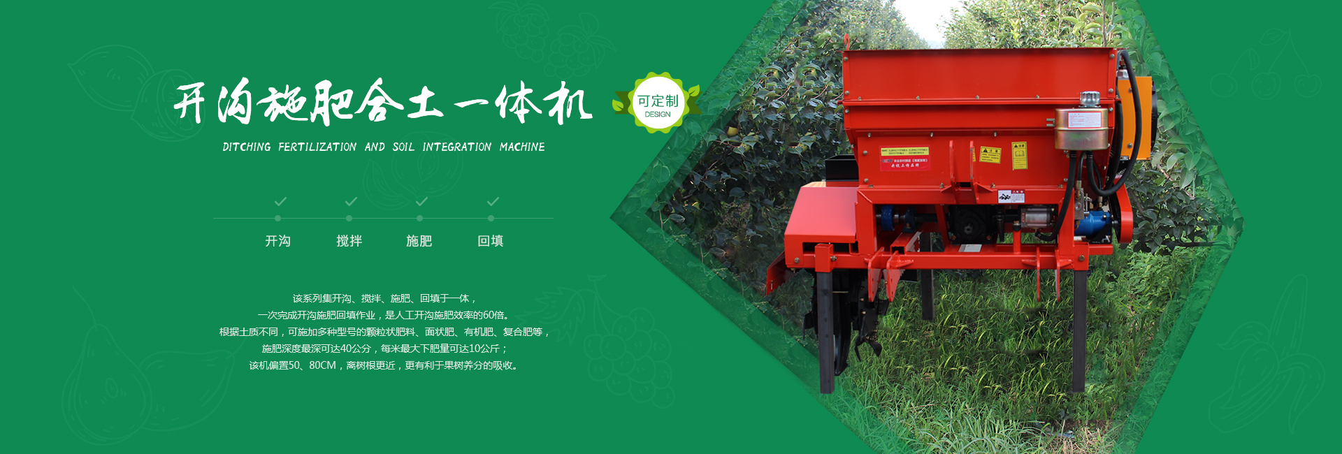 我公司主要經(jīng)營(yíng)產(chǎn)品有:果園管理機(jī)、拖拉機(jī)(窄距拖拉機(jī)、小型拖拉機(jī)、輪式拖拉機(jī)、山地拖拉機(jī)、四驅(qū)拖拉機(jī))、果園施肥機(jī)(開(kāi)溝施肥合土一體機(jī)、偏置開(kāi)溝施肥復(fù)土一體機(jī))、打藥機(jī)(風(fēng)送噴霧打藥機(jī)、小型風(fēng)送噴霧打藥機(jī)、大型風(fēng)送噴霧打藥機(jī)、果園打藥機(jī))、開(kāi)溝機(jī)(中開(kāi)溝機(jī)、偏置開(kāi)溝機(jī)、果園開(kāi)溝機(jī))、粉碎還田機(jī)、果園打草機(jī)、碎枝機(jī)(大型碎枝機(jī)、開(kāi)荒機(jī)、山地開(kāi)荒機(jī))、旋耕機(jī)(1米旋耕機(jī)、1.2米旋耕機(jī)、1.3米旋耕機(jī)、1.4米旋耕機(jī)、1.5米旋耕機(jī)以及偏置旋耕機(jī))、雙鏵犁等。不斷研制出適應(yīng)國(guó)內(nèi)現(xiàn)代化果園需求的果園裝備系列產(chǎn)品,并取得國(guó)家多項(xiàng)專(zhuān)利。