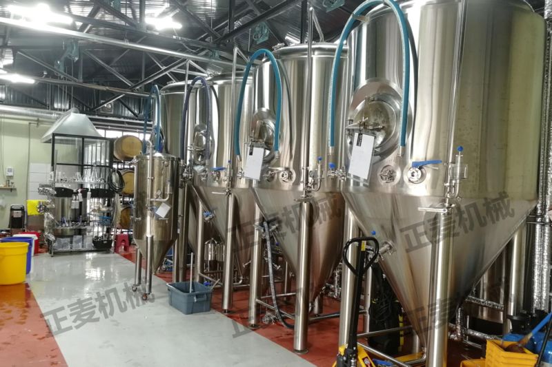 發(fā)酵是啤酒生產(chǎn)中極其重要的工藝過程。是一個有酵母參與的復(fù)雜的生化反應(yīng)過程,發(fā)酵罐為錐底圓柱形,罐體具備自身冷卻裝置,可很容易地控制發(fā)酵溫度;罐底為錐形,回收酵母及清洗都很方便;罐體具有CIP清洗系統(tǒng),保證了生產(chǎn)中的衛(wèi)生安全。具備了先進的國際發(fā)酵工程技術(shù),可采用PLC自動控溫技術(shù)。全過程控制啤酒發(fā)酵。