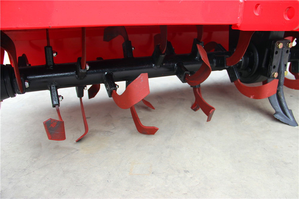 我公司果園管理機(jī)配套的旋耕機(jī)具有結(jié)構(gòu)簡(jiǎn)單,設(shè)計(jì)合理,輕便靈活等特點(diǎn).旋耕機(jī)按作業(yè)幅寬可分為1米型、1.3米型、1.4米型、偏置1.5米單側(cè)加寬型幾種,用戶可以根據(jù)作業(yè)需要選用。另外,該旋耕機(jī)可安裝我公司生產(chǎn)的鋤草輪,進(jìn)行果園除草作業(yè),具有作業(yè)效率高,拆裝靈活等特點(diǎn)。