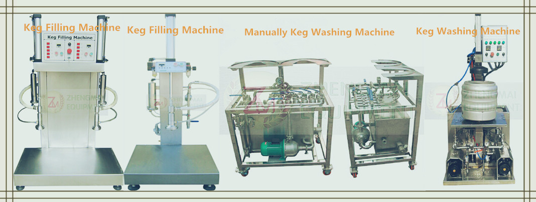 2) Keg washing machine with alkali tank and sterilization tank to clean the keg , up to sanitary grade ;