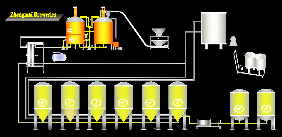 Before introduction of the mashing system , I wanner to show the whole beer brewery project process , from the Brewhouse System , Fermentation System ,Beer Serving System , Micro Beer Selling System including the auxiliary device .Through this drawing , you will briefly understand the draft beer brewery process.Zhengmai Economic turnkey beer brewery system can brew different tastes of the beer according to the different market requirements.