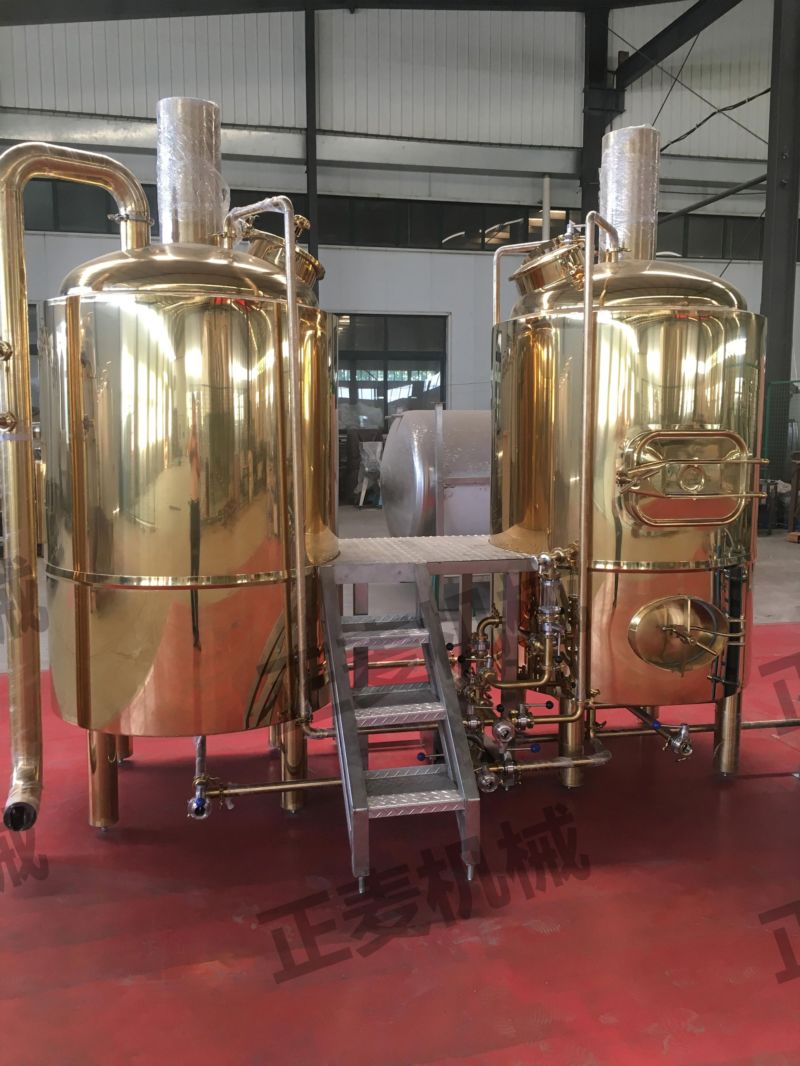 糖化系統(tǒng)是由糖化煮沸鍋、過濾槽、漩渦沉淀槽及工藝管道組成;糖化煮沸鍋為“蒸汽加熱式;電加熱式;燃?xì)饧訜崾健苯M成。罐體為雙層保溫方式“巖棉或聚氨酯”材料。加熱面積足夠達(dá)到麥汁煮沸蒸發(fā)量,能夠有效阻止熱能耗的外泄。罐體內(nèi)部采用國(guó)際標(biāo)準(zhǔn)不銹鋼精加工而成;外部采用不銹鋼或紫銅鏡面板組成,古樸典雅的外觀造型;即釀出美妙佳釀還有藝術(shù)品的象征。糖化煮沸鍋頂部加裝攪拌系統(tǒng)能使醪液均勻糖化;過濾槽頂部加裝耕刀系統(tǒng)保證醪液勻速過濾避免氧化。漩渦沉淀系統(tǒng);采用切線及離心力的作用能夠徹底的分離出多余的蛋白質(zhì)及雜質(zhì),達(dá)到成熟麥汁的純凈度。