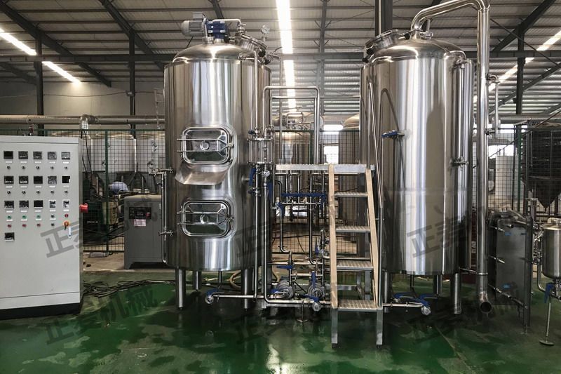 糖化系統(tǒng)是由糖化煮沸鍋、過濾槽、漩渦沉淀槽及工藝管道組成;糖化煮沸鍋為“蒸汽加熱式;電加熱式;燃?xì)饧訜崾健苯M成。罐體為雙層保溫方式“巖棉或聚氨酯”材料。加熱面積足夠達(dá)到麥汁煮沸蒸發(fā)量,能夠有效阻止熱能耗的外泄。罐體內(nèi)部采用國(guó)際標(biāo)準(zhǔn)不銹鋼精加工而成;外部采用不銹鋼或紫銅鏡面板組成,古樸典雅的外觀造型;即釀出美妙佳釀還有藝術(shù)品的象征。糖化煮沸鍋頂部加裝攪拌系統(tǒng)能使醪液均勻糖化;過濾槽頂部加裝耕刀系統(tǒng)保證醪液勻速過濾避免氧化。漩渦沉淀系統(tǒng);采用切線及離心力的作用能夠徹底的分離出多余的蛋白質(zhì)及雜質(zhì),達(dá)到成熟麥汁的純凈度。