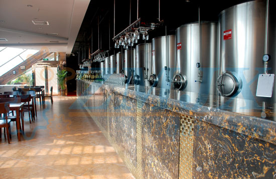 啤酒發(fā)酵系統(tǒng)有發(fā)酵罐、清酒罐、暫存罐組成;發(fā)酵是啤酒生產(chǎn)中極其重要的工藝過程。是一個(gè)有酵母參與的復(fù)雜的生化反應(yīng)過程,發(fā)酵罐為錐底圓柱形,罐體具備自身冷卻裝置,可很容易地控制發(fā)酵溫度;罐底為錐形,回收酵母及清洗都很方便;罐體具有CIP清洗系統(tǒng),保證了生產(chǎn)中的衛(wèi)生安全。具備了先進(jìn)的國際發(fā)酵工程技術(shù),可采用PLC自動(dòng)控溫技術(shù)。全過程控制啤酒發(fā)酵。