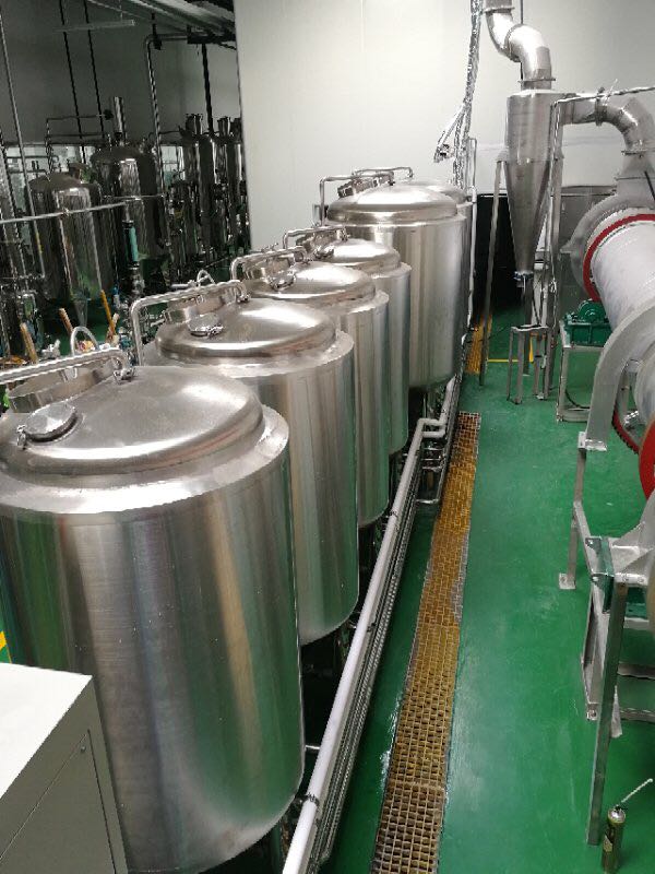 啤酒發(fā)酵系統(tǒng)有發(fā)酵罐、清酒罐、暫存罐組成;發(fā)酵是啤酒生產(chǎn)中極其重要的工藝過程。是一個有酵母參與的復(fù)雜的生化反應(yīng)過程,發(fā)酵罐為錐底圓柱形,罐體具備自身冷卻裝置,可很容易地控制發(fā)酵溫度;罐底為錐形,回收酵母及清洗都很方便;罐體具有CIP清洗系統(tǒng),保證了生產(chǎn)中的衛(wèi)生安全。具備了先進的國際發(fā)酵工程技術(shù),可采用PLC自動控溫技術(shù)。全過程控制啤酒發(fā)酵。